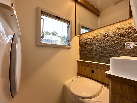 卫浴区位于休息区右侧,配有陶瓷洗手盆、塞特福德抽拉马桶、3KG滚筒洗衣机、储物柜、梳妆镜、淋浴器等设施,能够满足日常卫浴洗漱需求;最引人瞩目的是化妆镜下方的墙面上设计了独特的峡谷风装饰,营造出了一种高级感。好了本款戴德URV进口依维柯小额头房车小峰哥就同大家介绍到这里。阅览世间美好,带您跨越山河,品味人间烟火,给您一个移动的家 -我是小峰哥