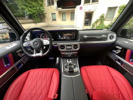 23款奔驰G63双12.3英寸高清屏,虚拟仪表盘与中控液晶屏融为一体,视觉上形成一个宽屏驾驶舱,中部的涡扇式空调出风口也颇具设计感,还大量采用了皮革的包覆。另外,新一代G级还对驾乘空间也进行了优化。