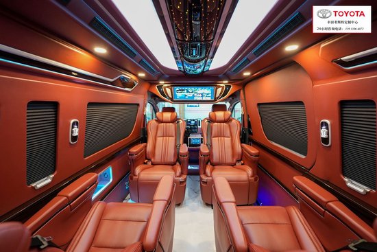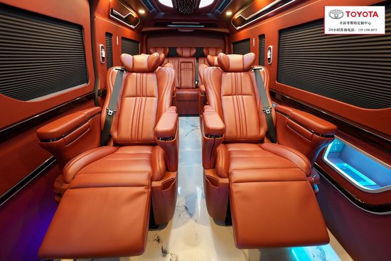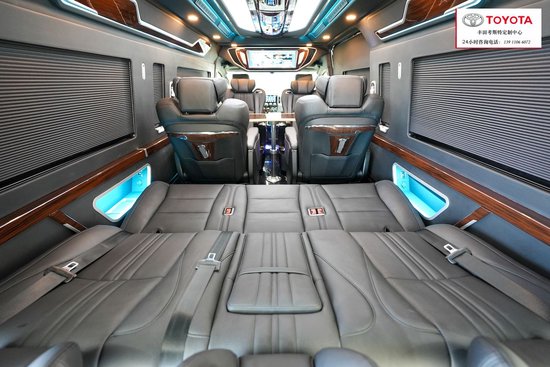 主副驾驶座椅真皮包覆,主副驾驶座椅四向电动调节带通风加热,主副驾驶中间升级车载扶手冰箱。丰田(进口)海狮-HIACE主副驾驶后面,加装了24寸高清液晶电视娱乐系统,全车升级阿尔派音响系统。加装了隐藏小桌板,可承重10公斤!