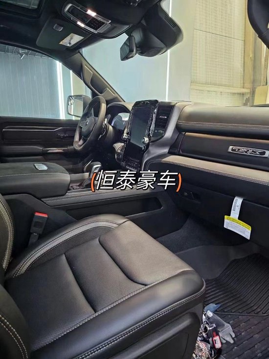 道奇霸王龙TRX在内饰部分进一步强化了其高性能版本的形象,中控台和座椅随处可见的TRX标识便是最好的例证。同时,作为道奇家族的旗舰车型,新车还配备了12英寸竖置中控屏幕,除了支持蓝牙、导航和车载Wi-Fi等常见功能,还支持Apple CarPlay和Android Auto手机映射