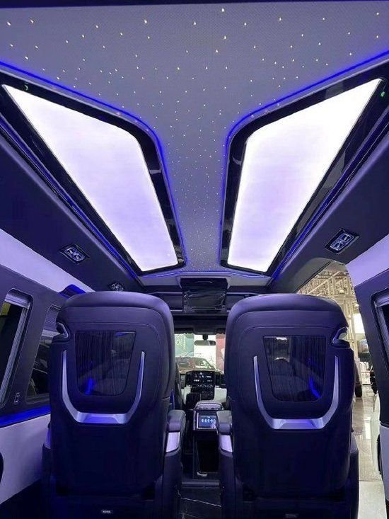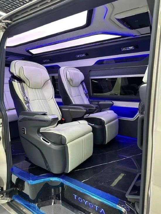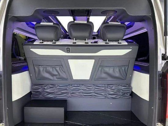 23款丰田海狮的航空座椅有着超乎寻常的尊贵感和舒适感,侧壁更换意大利顶级真皮包袱手感极佳,侧壁菱形格的设计使整车层次分明立体感更强。侧窗豪华电动窗帘,面料阻燃隔热、隔光、隔音。顶棚更换意大利顶级麂皮绒零污染零伤害的环保材质,搭配桃木件及氛围灯的组合,营造出温馨舒适的乘车环境。
