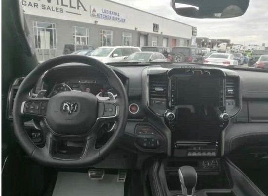 2023款道奇霸王龙在内饰部分进一步强化了其高性能版本的形象,中控台和座椅随处可见的TRX标识便是最好的例证。同时,作为道奇家族的旗舰车型,新车还配备了12英寸竖置中控屏幕,除了支持蓝牙、导航和车载Wi-Fi等常见功能,还支持Apple CarPlay和Android Auto手机映射。