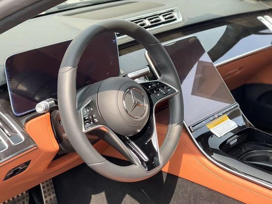 奔驰S500内饰设计上都不能用豪华来形容,简直就是奢华总统小套房,中控部分搭载了双屏设计,12.8英寸的中控大屏以及12.3英寸的悬浮式行车电脑屏和HUD投影显示,配上棕色的内饰设计以及高亮的钢琴烤漆面板,将科技感与时尚感完美融合在一起。
