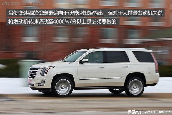 在我驾驶着这款全新凯雷德时,我更喜欢将油门深踩一些,因为那样才能充分体现出它的动力,虽然变速器的设定更偏向于低转速扭矩输出,但对于大排量发动机来说,你不将发动机转速调动至4000转/分以上,你怎么对得起躺在发动机舱内的那台V8呢?