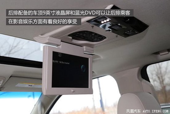 后排乘客不仅拥有着良好的乘坐空间,在舒适性配置方面它也有着很好的表现。后排配备的车顶9英寸液晶屏和蓝光DVD可以让后排乘客在影音娱乐方面有着良好的享受,而第二排座椅加热功能则在这个寒冷的冬季让我们的屁股得到了很好的待遇。