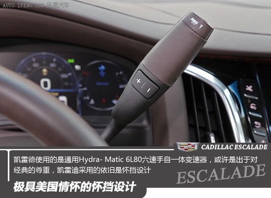 变速器方面,凯雷德使用的是通用Hydra- Matic 6L80六速手自一体变速器,或许是出于对经典的尊重,凯雷德采用的依旧是怀挡设计,对于如此大尺寸的SUV来说,我个人认为怀挡设计更可以表现出它的风格,特别是对于那些美系SUV。