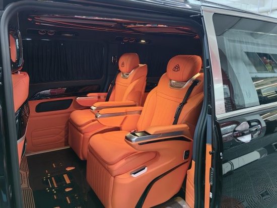 奔驰威霆 (配置|询价)商务车其外观采用了奔驰AMG的外观套件,大量镀铬件点缀装饰,黑白相间,层次分明,整车质感非常出众,时尚又大气。品质工艺都是一流水准,拥有着豪华霸气的超强气场。 今天介绍这款新款奔驰威霆展厅刚刚到的,从里到外面全部更换的一款奔驰威霆,车身长度5370*宽1928*高1880*,让您花低的价钱来享受一台最高端的奔驰威霆商务车,也绝对有面子。