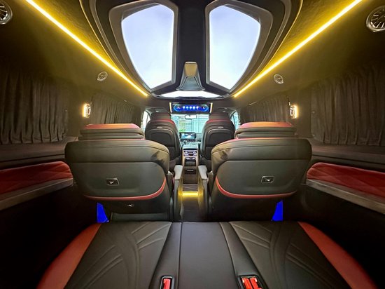 这款车的第三排是三联排的沙发床,可以180度的进行平躺,最后一排可以乘坐三人。日常出行想在车内休息一下,还是很惬意的一件事。