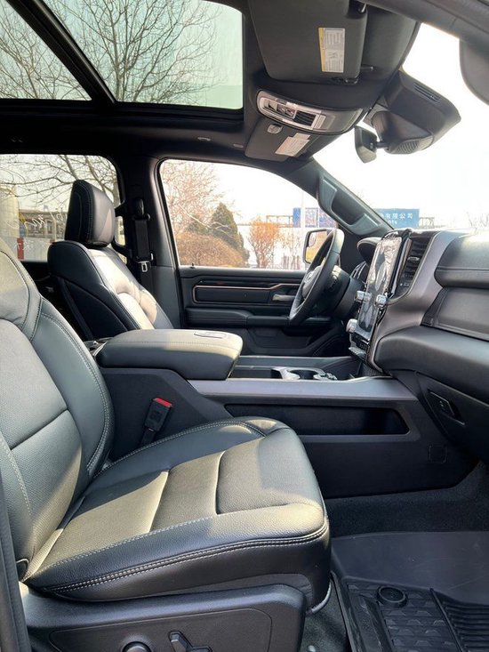 2022款全新道奇公羊运动版皮卡配备了克莱斯勒研发的HEMI-5.7升自然吸气发动机,最大功率283Kw,最大扭矩达到548Nm,道奇公羊真皮座椅摸起来十分舒适和细腻,很多细节地方也做得相当精致,后排座椅则有通风和加热设备,并且配备了一个小型存储工具箱,可见此款车的设置是十分人性化。
