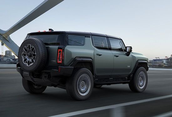23款悍马EV皮卡从侧面来看采用了方正的造型,巨大的车身轮廓体量感很强,突出于车身的轮眉看上去相当有力量,而且延续了高腰线窄车窗的设计,勾勒出高大威猛的效果。另外新车还采用了可拆卸式的车顶,配合尺寸夸张的越野轮胎,视觉效果非常震撼。