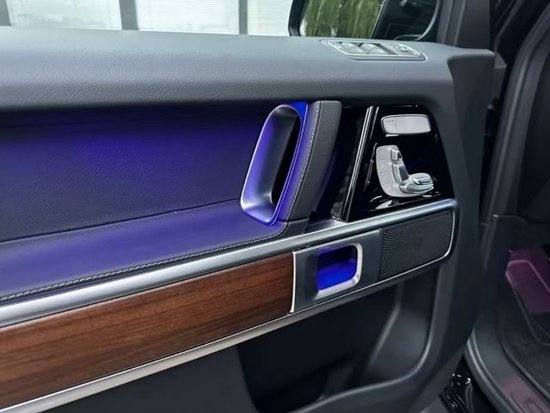 23款欧版奔驰G500 (配置|询价) 无豪车消费税,不改车架号 黑/黑 标配:汽油4.0T,422马力,V8发动机,610扭矩,9速,四驱,主副驾真皮电动,前后排加热,金属漆,悬挂前双叉臂后整体桥,黑色护板,一键启动,液晶仪表,越野屏幕,大灯清洗,后隐私玻璃,LED头灯和尾灯,外后视镜电动加热,主驾侧自动调暗,感应雨刷,定速巡航,纳帕皮革多功能方向盘,具有 64 种颜色和 10 个色区的环境照明,备胎罩,自动气候控制,前排座椅和头枕的记忆功能,无框内镜,宽屏驾驶舱,主动车道保持辅助,前后电眼,倒影,胎压控制,18轮,100升大油箱,球形拖车钩,胡桃木内饰装饰(仪表台下方、门板、扶手)