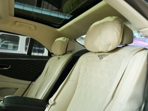 23款宾利飞驰雅度版座椅的材质当然也是最顶级的北欧小牛皮,由工匠精挑细选手工缝制而成,细密的缝线,每一处都透漏着极致优秀的质感,并拥有加热,通风,5种模式的按摩功能,前排座椅的22项调节也会给您带来舒适的驾乘体验。 全新飞驰亦可选配“宾利三面翻转屏,当按下发动机起动按钮时,中控台的饰板会滑动翻转,呈现出一个12.3英寸的液晶触摸屏,宾利三面翻转中第二个饰面镶嵌有三个模拟表盘,分别为车外温度计、指南针与计时器,第三个饰面为简约精美的木饰面板。该饰面与内饰面板相统一,车辆还提供三种搭色方案,多种方向盘,双菱形缝线,座椅滚边,投影式迎宾灯,地毯滚边等配置供选装。