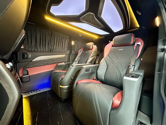 整车 是经典的2+2+3的布局,中间两个很豪华的航空大座椅,通风,加热,按摩,旋转的功能全部都有,座椅是真皮包覆,乘坐的舒适感很强,座椅旁边也带有无线充电。