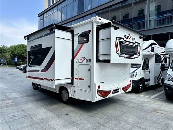 全新瑞弗V820双拓展房车迎来了属于自己的全新升级,基于轻奢品质的要求,全车做了多项升级改造。适合一大家子或者朋友结伴出行,双拓展尽显空间优势,真正的带着家去旅行。瑞弗V820采用双拓结构,即房车左侧与车尾均配置空间拓展机构,这样,驻车时的布局和人员流动并不会显得太过于拥挤,车内空间实现最大化。