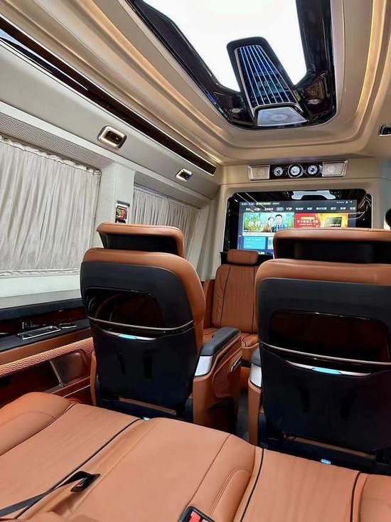 宾特房车在车内采用了封闭隔断式的七座商务车空间布局,虽然有着隔断阻碍了空间的流畅感,但是因为奔驰斯宾特的“大”,让后舱的空间感并没有损失多少。在隔断处奔驰斯宾特安装了大尺寸升降式的液晶电视以及德国知名音响品牌Bose的专供车载音响。让车内的娱乐设施做到了家庭影院的豪华级别,