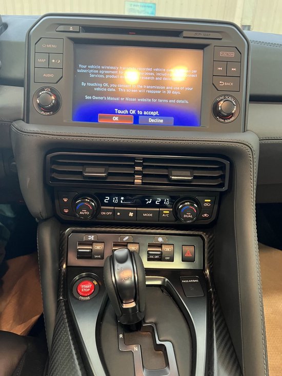 2023款战神的动力其实应该是最不需要关心的环节,毕竟真的没换代,稍微带一下,2023款美规版和加版的GT-R Premium车型搭载3.8升双涡轮增压V6发动机,最大功率573马力,峰值扭矩633牛·米,传动系统匹配的是6速双离合变速箱,并配备四轮驱动系统。