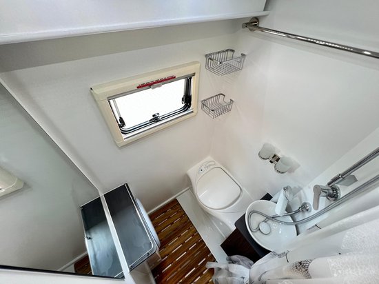洗手间空间充裕,舒适度满分。配置赛特福德抽拉式房车专用马桶、卫生间面盆、水龙头、淋浴花洒等设施,在炎热的夏天,随时能够享受一场痛快的淋浴。并且,最值得一提的是,这里还有一个3kg的小天鹅洗衣机。被汗水打湿的衣物,再也不用费心费力的用来手洗了。
