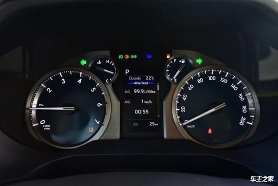 2023款丰田霸道4000 VX午夜版仪表盘搭载了一块彩色液晶仪表。