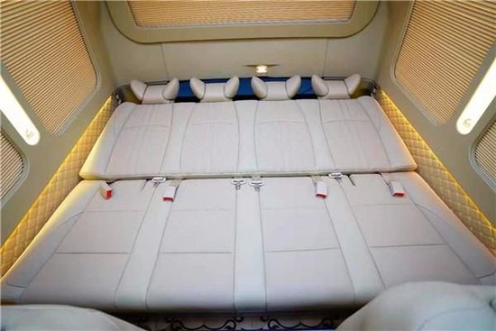 丰田考斯特多功能商务车内部原车座椅全部拆卸,更换成为更加舒适的真皮座椅,或者航空座椅,当然,如果条件允许,丰田埃尔法 (配置|询价)原装进口座椅也是也可装备在丰田考斯特上的,不仅如此,华通丰业丰田考斯特后排座椅采用了电动沙发床的设计,日常出行可以乘坐,如果旅途感到劳累可以将四人联排座椅放倒,瞬间变成一张1.6*2米的电动双人床!