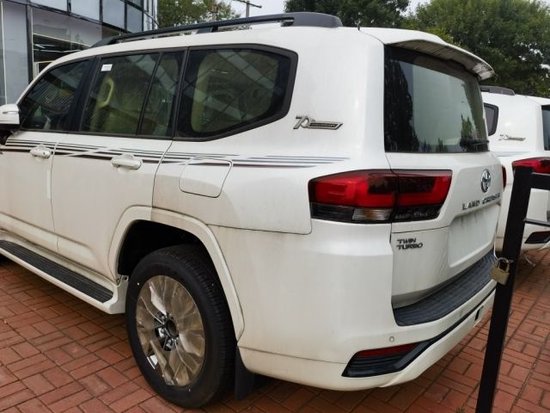 23款中东版酷路泽 LC300 GXR白米多台 当天票8气囊、7座、遥控启动、真皮座椅、265/55R20铝轮、天窗、一键启动、四门无匙进入、冰箱、新款前后大包围、LED大灯、大灯清洗、航踏、黑色行李架、四门迎宾灯、前排电动座椅、前4后4电眼、电动折叠后视镜、9英寸中央显示屏、倒车影像、双差速锁、三种驾驶模式、木纹内饰、多功能木纹方向盘、电动尾门、巡航、无线充电、车身彩条、70周年纪念标、前雾灯、拖钩、尾翼。