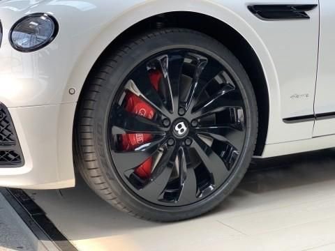 23款宾利飞驰雅度版车身侧面,修长的车头和略微靠后的座舱营造出富有运动感的比例,后门处隆起的腰线和上扬式的下方饰条使得侧面看来肌肉感更强,这样的设计也呼应了1959款宾利S2 Continental (配置|询价) Flying Spur的设计。与此同时,V8车型还提供了最新的22英寸光泽黑色轮毂可供选装。