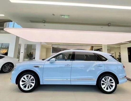 2023款宾利添越加长(雅度版)引人注目的翼子板进气口、造型时尚的侧围板、鲜明独特的Azure徽标、以及令人惊艳的金属质感燃油箱盖和机油箱盖整车外观中众多臻妙精美的细节淋漓尽致地呈现出这款车型的奢雅特质。专属的22英寸十辐轮毂极富视觉冲击力、有三种令人赞叹的外观可供选择、这三种外观为雅度版车型独有。