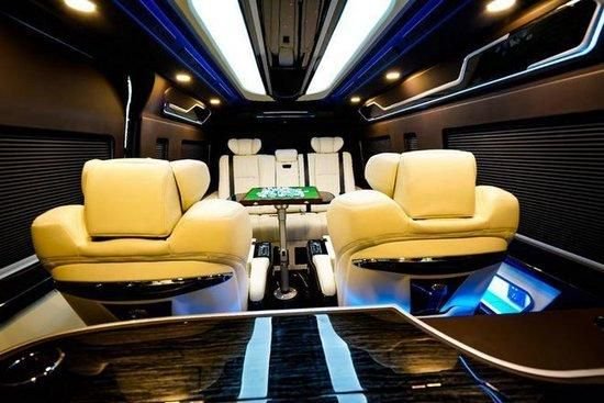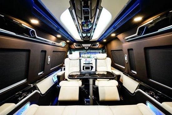 里面的座位布局虽然是9个座位,但看起来并不拥挤。车厢设计宽敞,乘客区中间有一条过道将两个座位分开。椅子方便骑乘和进出。