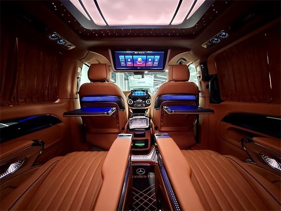 奔驰威霆改装整车尺寸5370x 1928x 1880mm,轴距更是达到了3430mm,是当之无愧同等级MPV空间之王。超大空间赋予了改装潜力优异。车身搭载2.0T发动机搭配211匹马力,,动力十足的同时,散发着一股势不可挡的气势,很有王者贵族风范。133-7022-6676
