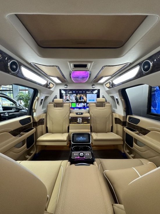 2023款超级林肯领袖一号超大的车身,表现出来的不但是威猛,更散发出来的是它独有的尊贵气味,让人肃然起敬,车头是领航员最具特点之处,充分承继了林肯血统,表现了美国车大气沉稳的特色,十字盾形车标,镶嵌在车头的正中位置,稀奇夺目,与大型的散热格栅融为一体,显得更霸气。林肯领航员 (配置|询价)大家都比较熟悉,这是一款加长林肯领袖一号嘉德名车实拍图片,请大家欣赏。
