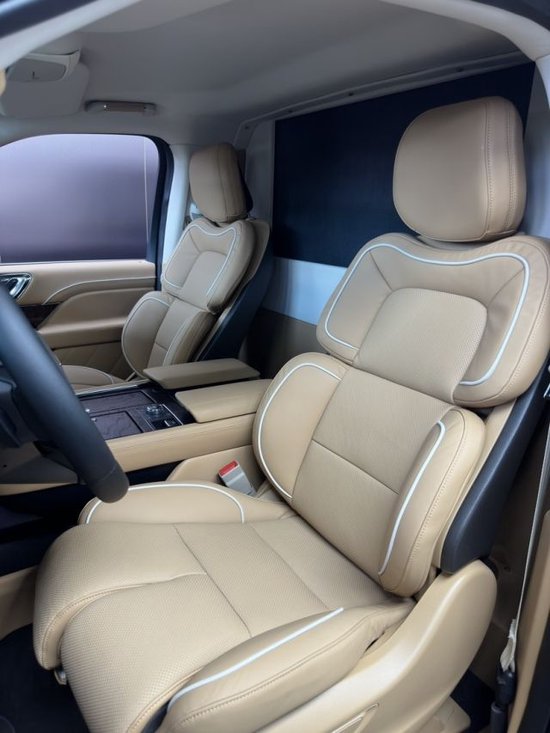 2023款林肯领袖一号内饰奢华程度可谓越野车中的模范,非常对得起它的身价,全部座椅均由真皮打造,第三排座椅可以依据搭车用途随意立起或折叠,以便有更富余的后备箱空间,尽显精美高档,做工细腻,质料上乘。