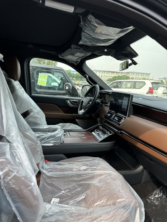 新款林肯领航员内饰部分,新车依旧配备了全液晶仪表盘以及三辐式的多功能方向盘,中控多媒体显示屏采用了悬浮式的设计,配合下方空调控制面板的物理按键,让新车在凸显豪华感的同时也增添了一些科技氛围。