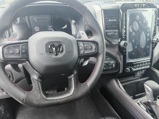 道奇霸王龙TRX在内饰部分进一步强化了其高性能版本的形象,中控台和座椅随处可见的TRX标识便是最好的例证。同时,作为道奇家族的旗舰车型,新车还配备了12英寸竖置中控屏幕,除了支持蓝牙、导航和车载Wi-Fi等常见功能,还支持Apple CarPlay和Android Auto手机映射