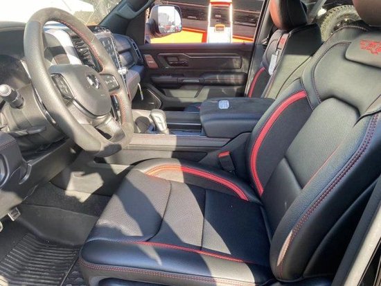 2023款道奇公羊1500霸王龙TRX座椅方面,主副驾12项电动调节并带有座椅加热,通风功能,主驾驶位还有记忆功能。第二排的座椅靠背可以调节,还配有按摩功能,每个座椅独立配一个操控手柄,各项功能由乘坐者自己控制。门板也是真皮包裹带有红色缝线,这种细节处处彰显高级。