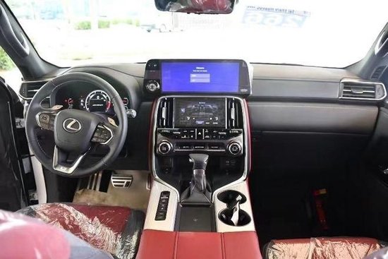 雷克萨斯LX (配置|询价)600内饰用料得到了优化升级、并首次加入了双触屏设计,位于上方的12.3英寸屏幕负责显示音频、导航等信息,下方的7英寸屏幕主要负责控制空调系统,但也可选择显示越野参数等信息。