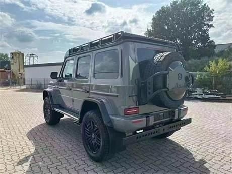 2023款奔驰G (配置|询价)63 4x4²整体延续了经典的方盒子造型,细节上则是略微调整,各种圆润的弧度也能体现出设计师在经典和中力图打造的亮点。奔驰G63AMG限量版独特的外观造型设计,经过重新设计的前进气格栅与两侧圆形大灯相互呼应。
