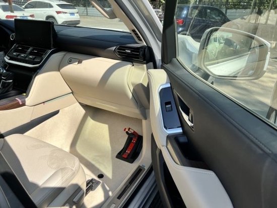 详细配置:天窗、8气囊、底挂备胎、7座、18寸锻造轮毂、电动折叠后视镜、镀铬内门把手、前排电动座椅、真皮座椅、通风座椅、电尾门、车身稳定控制、高度大灯调节、双差、多功能桃木方向盘、桃木内饰、巡航定速、无钥匙进入、一键启动、遥控启动、12.3寸原厂超大屏(GR同款)、JBL高级音响、自动空调、蠕动模式、坦克掉头、无线充电、电子手刹、MTS驾驶模式、高低速四驱模式、冰箱、自动防眩目后视镜、LED日行灯、LED大灯、LED尾灯、大灯清洗、雾灯、前4后4电眼、镀铬中网、行李架或前小杠(前小杠和行李架只可选一)、尾翼、高位刹车灯、倒车影像、拖车钩、踏板、