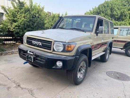 23款 中东版丰田LC76绞盘、涉水喉、桃木内饰、桃木方向盘、棕色真皮座椅!5速手动变速箱 、130升油箱、分时四驱、前差速器锁、后差速锁、16英寸越野铝合金轮毂265/70R16、刹车配备:前盘。后鼓、前悬螺旋弹簧、后悬板式弹簧 、越野性能:ABS+VSC+BA+EBD+HAC+ATRC、2气囊、彩色保险杠、白车/黑杠、高位刹车灯 、镀铬外后视镜带电动调节 、侧踏板 、数字时钟、五座 、半自动空调 、熏黑大灯、电动门锁 、电动车窗 、收音机 CD 、蓝牙 、双扬声器 、胎压监测 、USB快速充电 、前雾灯 、后雾灯 、手套箱锁带钥匙 、日行灯、徽章、脚垫、黑色轮眉、散热格栅、原车新款彩条