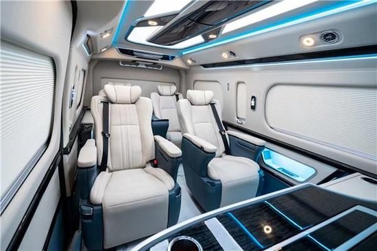 丰田海狮整车(华通丰业)升级了加强型的隔音隔热处理,车内带空气净化系统,无线充电系统。在进门侧加装了氧化铝脚踏带迎宾灯的,(华通丰业)整车都是采用纳帕级皮质进行包覆的,侧壁桃木装饰,手动百褶窗帘,后舱暖风系统,棚顶灯光,这个有智能触摸控制系统。灯光超级棒。车厢照明灯(乘客坐2个),电源插座,多用途储物盒,杯架。内饰的装饰使得我们的乘车拥有更加舒适的环境更加便捷的旅行。
