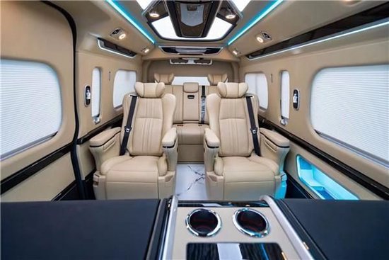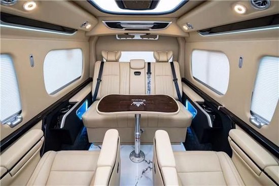 丰田海狮整车升级了加强型的隔音隔热处理,车内带空气净化系统,无线充电系统。在进门侧加装了氧化铝脚踏带迎宾灯的,整车都是采用纳帕级皮质进行包覆的,侧壁红木装饰,手动百褶窗帘,后舱暖风系统,棚顶灯光有智能触摸控制系统。灯光超级棒。