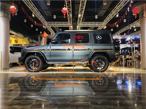 G63 (配置|询价)车身尺寸的增加丝毫没有影响它的经典造型,脚踏上方的拉花更是平行进口限量版独享的配置,4864*1984*1964mm的车身尺寸要比老款更大,同时轴距也达到了2890mm,改善了车内空间。现在奔驰G63的使用大部分都是在城市道路中,为了更加适宜使用环境,全新款奔驰G63底盘结构也有所改变,悬挂改为整体桥悬挂。车身材质也改为钢铝混合,减重后更加适宜城市道路的操控,但这些改变并不意味着奔驰G63完全妥协于城市,它的越野性能依然强大。(购车热线:15102223918)微信同步。