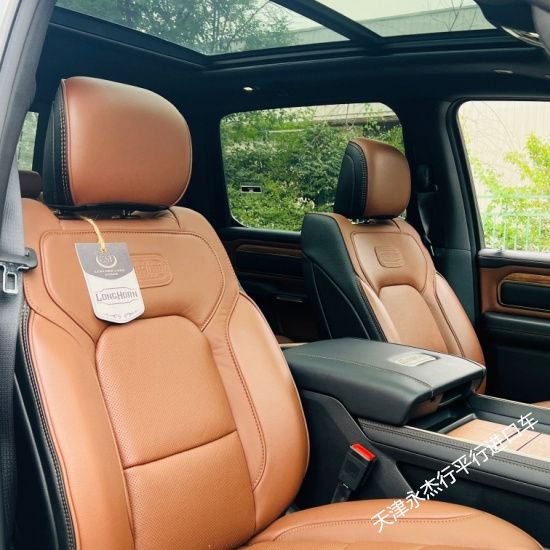 22款道奇公羊长角号在你打开车门的一瞬间,你就能够感受到这款皮卡的豪华感扑面而来,肉眼能够看到的地方几乎全是皮革材质,仪表板、车门把手、门饰板都是百分百全粒面皮革。对于座椅还是有些许不同,座椅表面还镶嵌有鳄鱼浮雕图案,手套箱以及中控台等处也均有这样的铭牌标记,时刻提醒你这款皮卡身份的高贵。