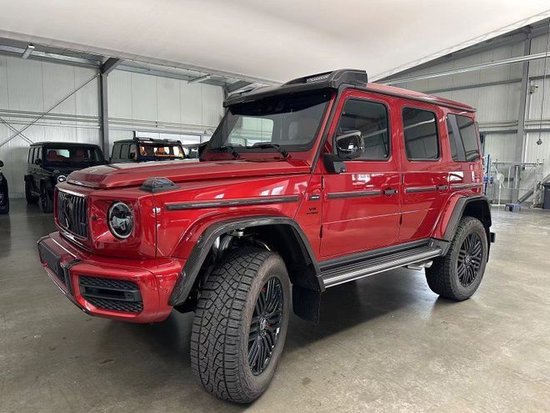 23款奔驰G63 (配置|询价) 4X4配备了更多更硬核的车身组件,包括车顶探照灯、行李架、后备胎支架等,同时配备22英寸的轮圈和越野轮胎。数据来看,AMG G 63 4X4离地间隙为13.8英寸,与G 63相比增加了4.3英寸,新车的涉水深度达到35.8英寸,并拥有45度的最大攀爬坡度。