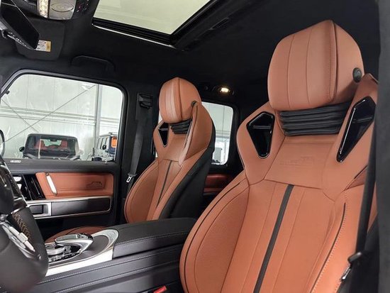 23款奔驰G63 4X4在内饰上,该车配备了与车身颜色相同的氛围灯、内饰采用双联屏外观设计、全液晶仪表、中控屏规格均为12.3寸。车内有很多碳纤维点缀,副驾驶大扶手还在,方向盘是平底式。