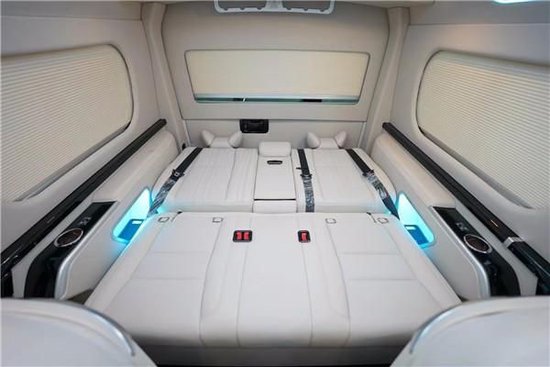 丰田海狮第三排的沙发床也是能够一键方平的,车内日常还能休息,航空座椅往后旋转也能组成一个大床,休息,不在话下,整车在侧墙上除了包覆,还单独做了造型,精致又有用处,很贴心。无线充电,USB接口,220V的充电车内都有。