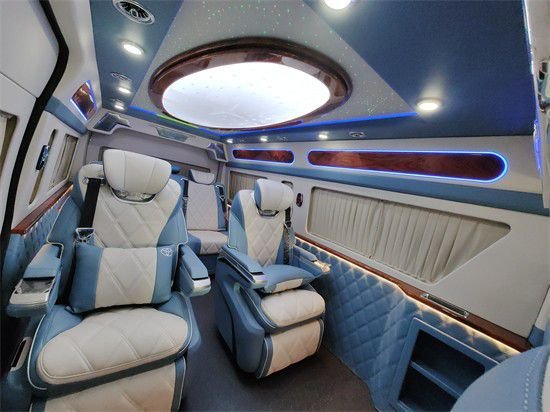高级麂皮绒窗帘,欧式星空顶,典雅高贵。中排座椅旋转功能,带通风加热按摩 。