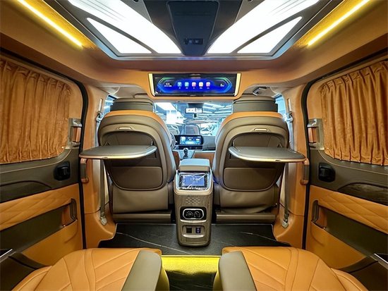 车子在音响方面也是做了大力的改造,用的是影院级别VVcar9.1声道的音响并带有GPS处理器,光是扬声器的数量就有8个,坐在车内声学感受可以得到很大程度的提升。同时无线网络电视机在配合多色的幻彩氛围灯,以及独家定制的天幕顶灯,整体单从眼睛可触的方面来讲,他都会有着非常舒心的感受。这是一款视觉听觉都能够得到很好体验的商务车。