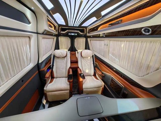 豪华真皮座椅可以前后、左右调节、加热、电动按摩,同时可以调节靠背、腿拖等。德国进口三折手动沙发床,座椅与大床之间切换自如,操作简单,豪华大床的真皮触感舒适,营造良好的车内休息睡眠环境。