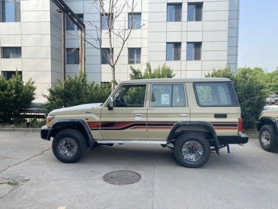 23款 中东版丰田LC76绞盘、涉水喉、桃木内饰、桃木方向盘、棕色真皮座椅!5速手动变速箱 、130升油箱、分时四驱、前差速器锁、后差速锁、16英寸越野铝合金轮毂265/70R16、刹车配备:前盘。后鼓、前悬螺旋弹簧、后悬板式弹簧 、越野性能:ABS+VSC+BA+EBD+HAC+ATRC、2气囊、彩色保险杠、白车/黑杠、高位刹车灯 、镀铬外后视镜带电动调节 、侧踏板 、数字时钟、五座 、半自动空调 、熏黑大灯、电动门锁 、电动车窗 、收音机 CD 、蓝牙 、双扬声器 、胎压监测 、USB快速充电 、前雾灯 、后雾灯 、手套箱锁带钥匙 、日行灯、徽章、脚垫、黑色轮眉、散热格栅、原车新款彩条