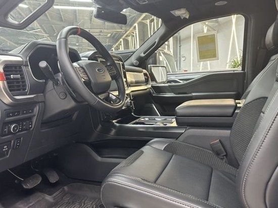 全新23款福特F-150猛禽进入车内,尺寸夸张的12英寸中控屏十分吸睛,为这台硬汉座驾内部赋予了更强的时尚属性。即便如此,横平竖直的线条设计以及大量传统物理按键的出现依旧可以让我们感受到它的原始野性。此外,多功能方向盘面板按键布局同样迎来了变化,并配备铝制换挡拨片。