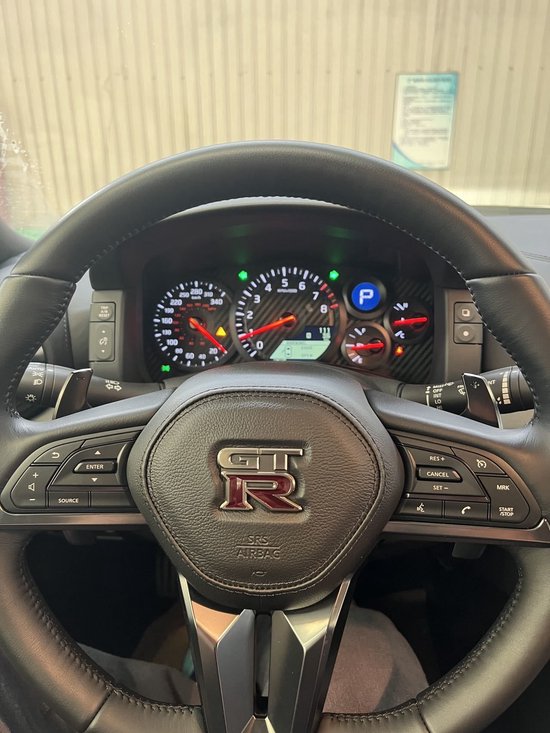 2023款战神的动力其实应该是最不需要关心的环节,毕竟真的没换代,稍微带一下,2023款美规版和加版的GT-R Premium车型搭载3.8升双涡轮增压V6发动机,最大功率573马力,峰值扭矩633牛·米,传动系统匹配的是6速双离合变速箱,并配备四轮驱动系统。